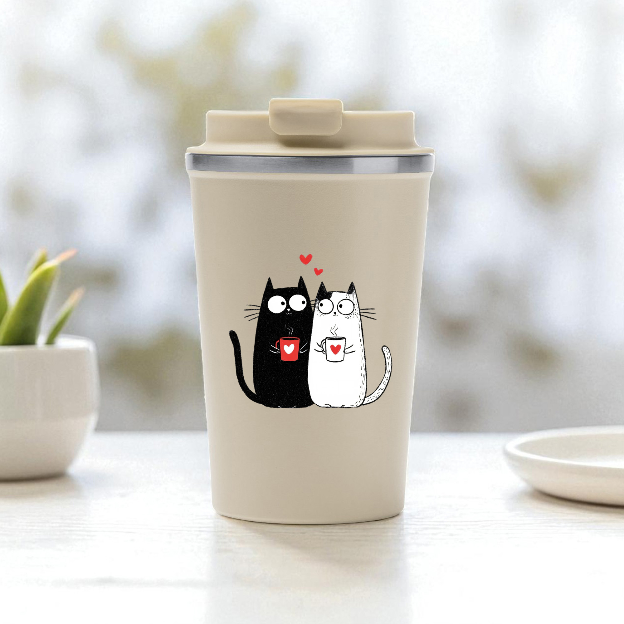 Set cani termos cafea-Love, Purrs & Coffee
