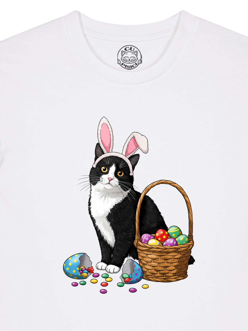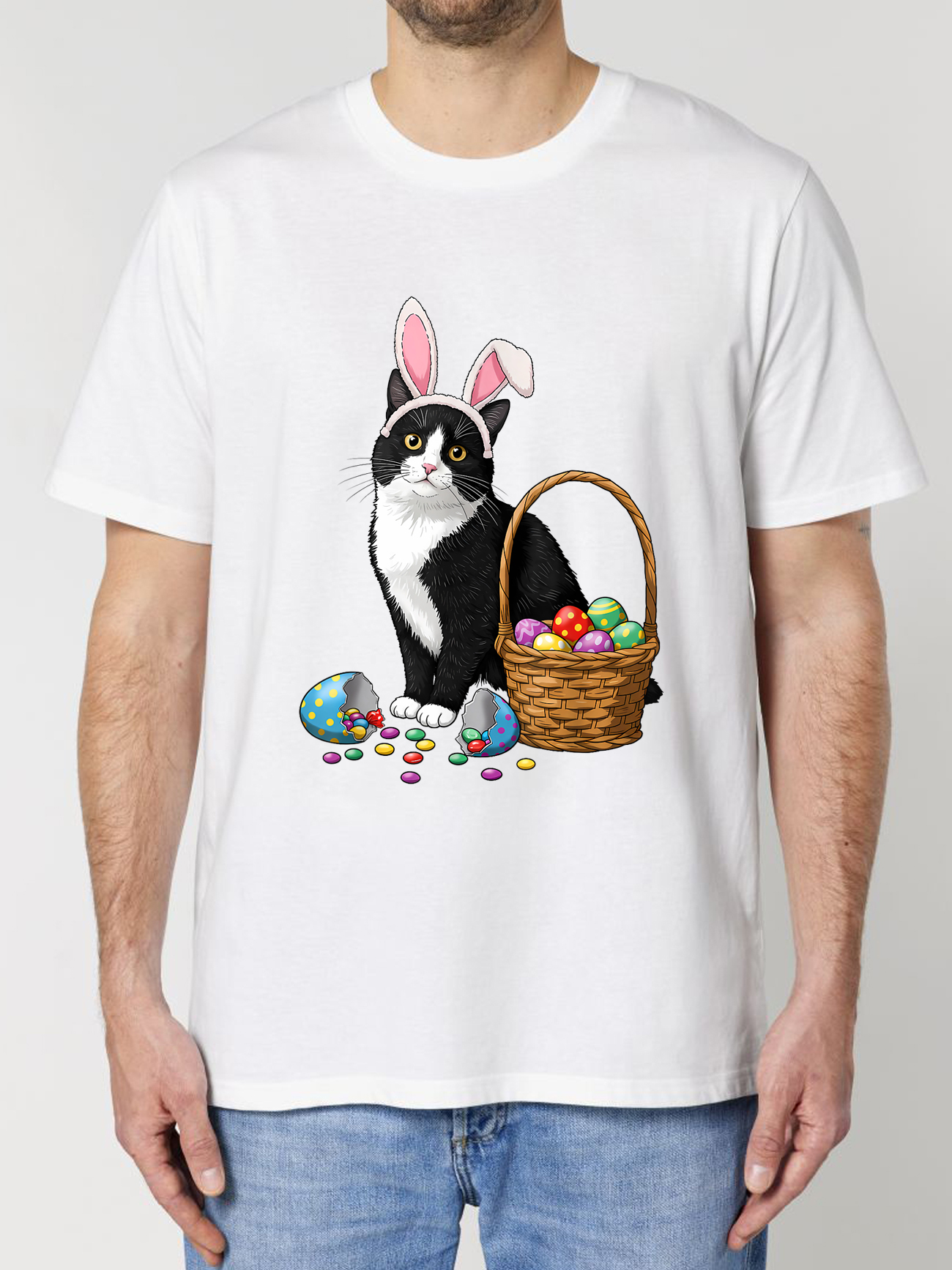 Normal ca si tinuta de Paste trebuie sa fie purrrfecta! Alege acest tricou bumbac organic-Bunny Cat, Barbati, si bucura-te de aceasta sarbatoare speciala alaturi de cei dragi!