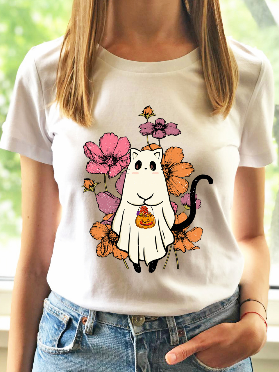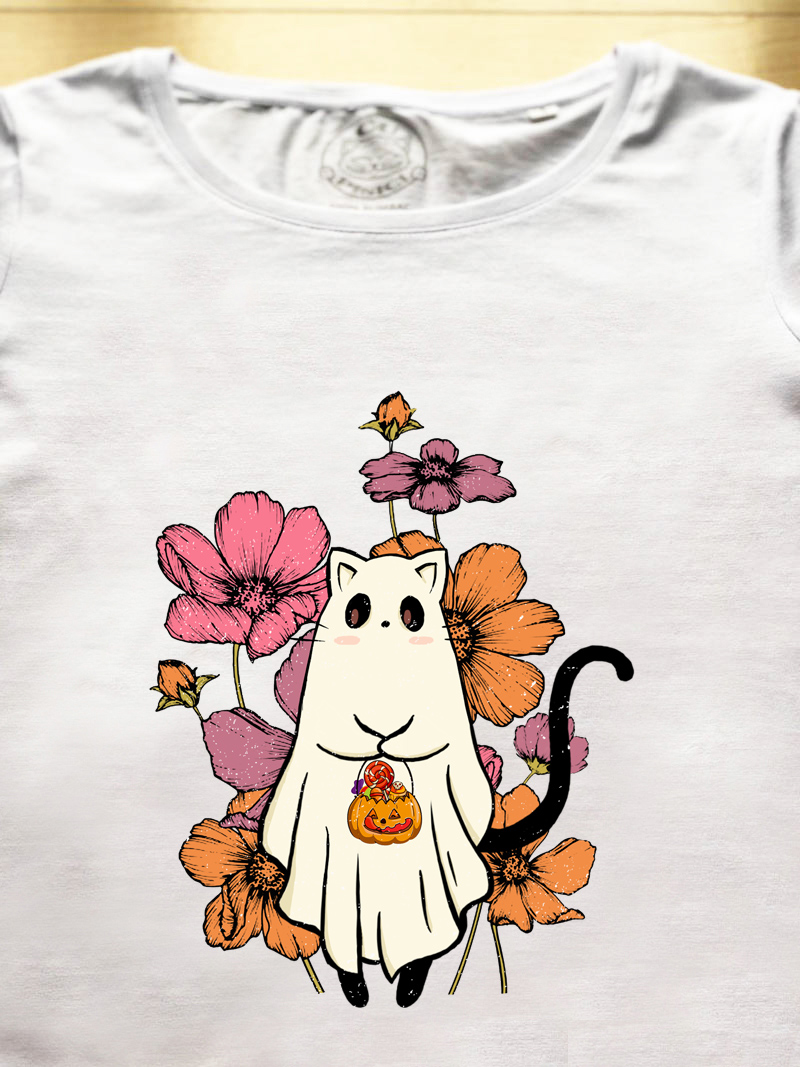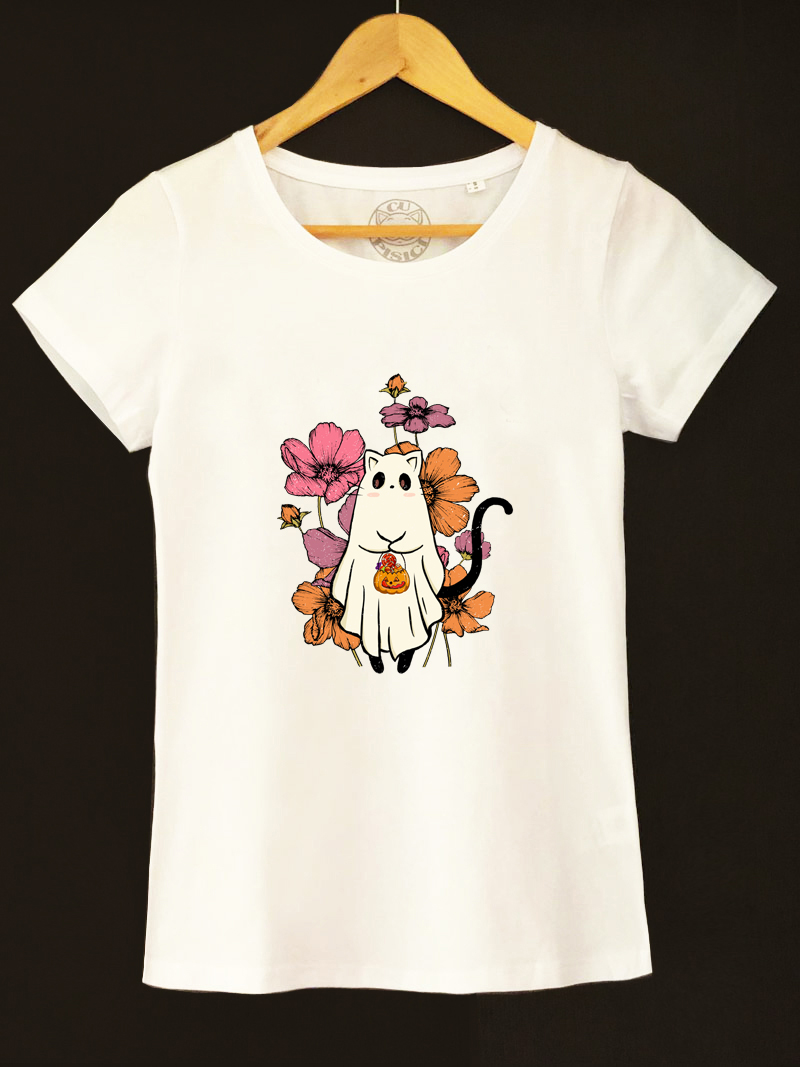 Tricou bumbac organic-Cute Halloween Cat, Femei