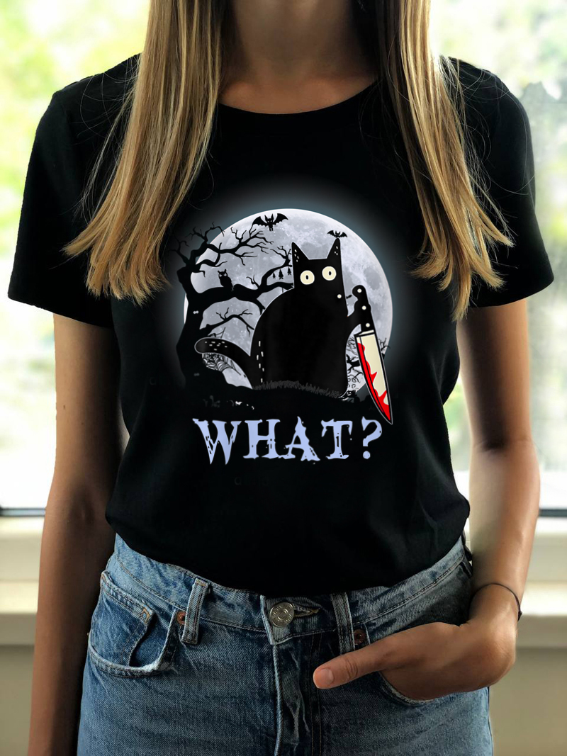 Si tie iti place Halloweenul? Daca da, intra in atmosfera sarbatoarei purtand acest Tricou bumbac organic-Killer Cat, Femei, si ingrozeste-i pe toti din jurul tau! Miau!