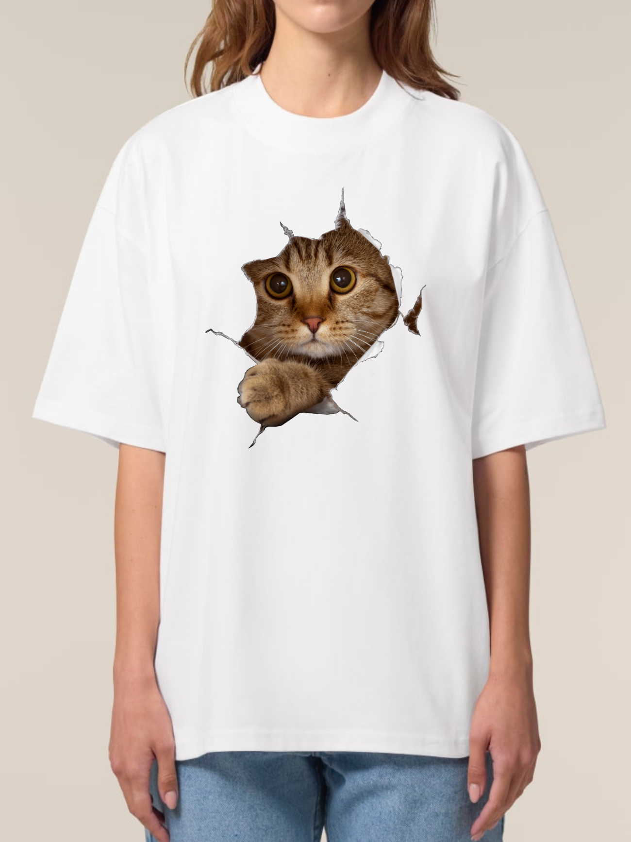 Tricou bumbac organic Oversized-Curious Cat, UNISEX