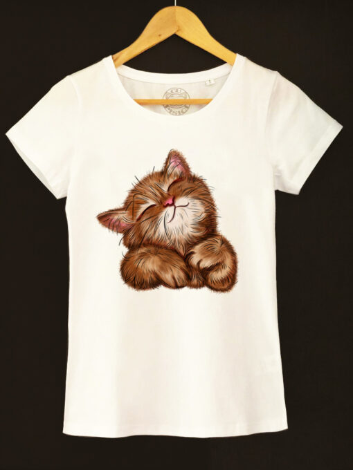Tricou bumbac organic-Super Cute Cat, Femei-Alb