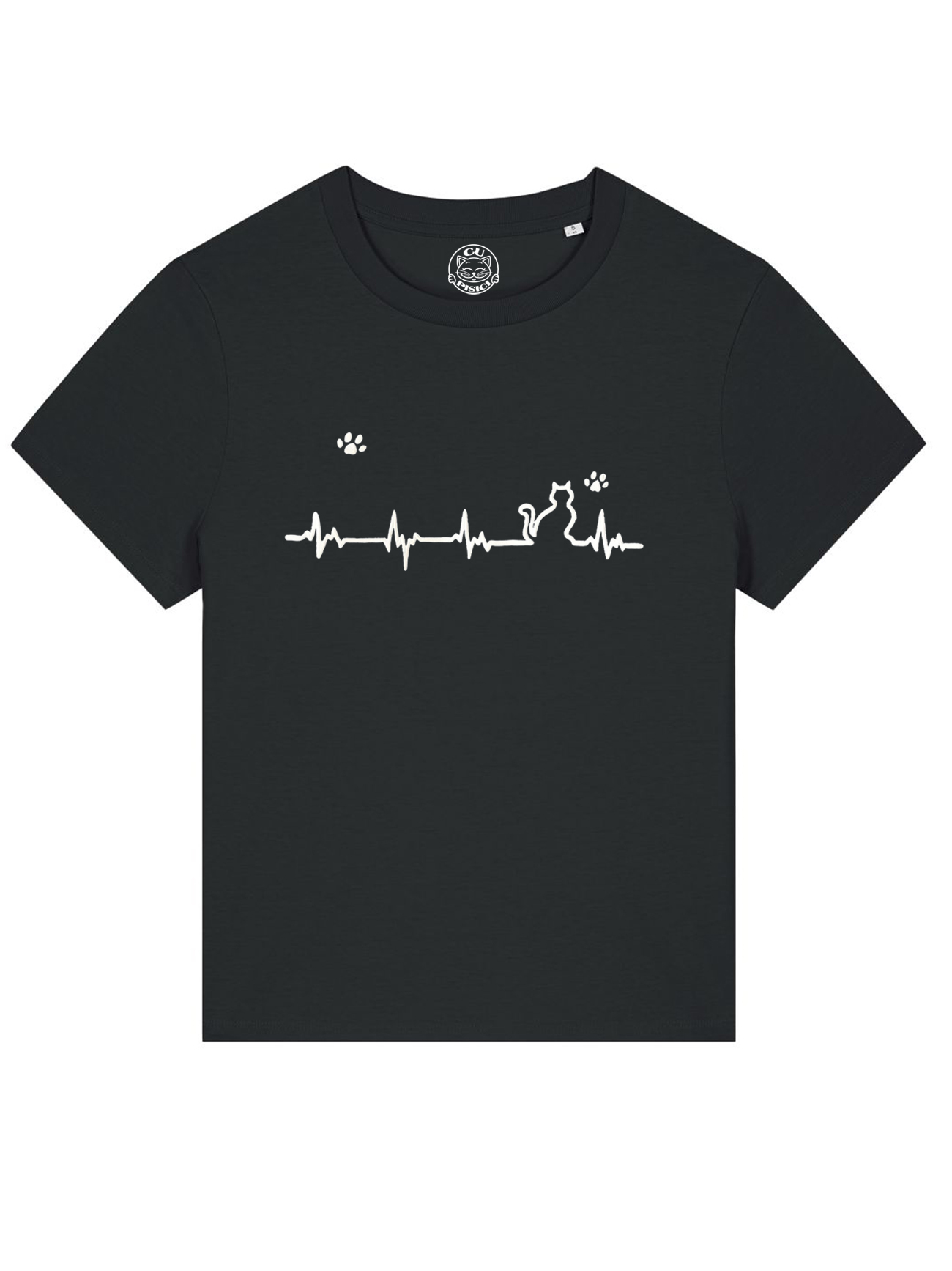 Tricou cu Pisica Heartbeat si Pernute, pictat manual-Negru