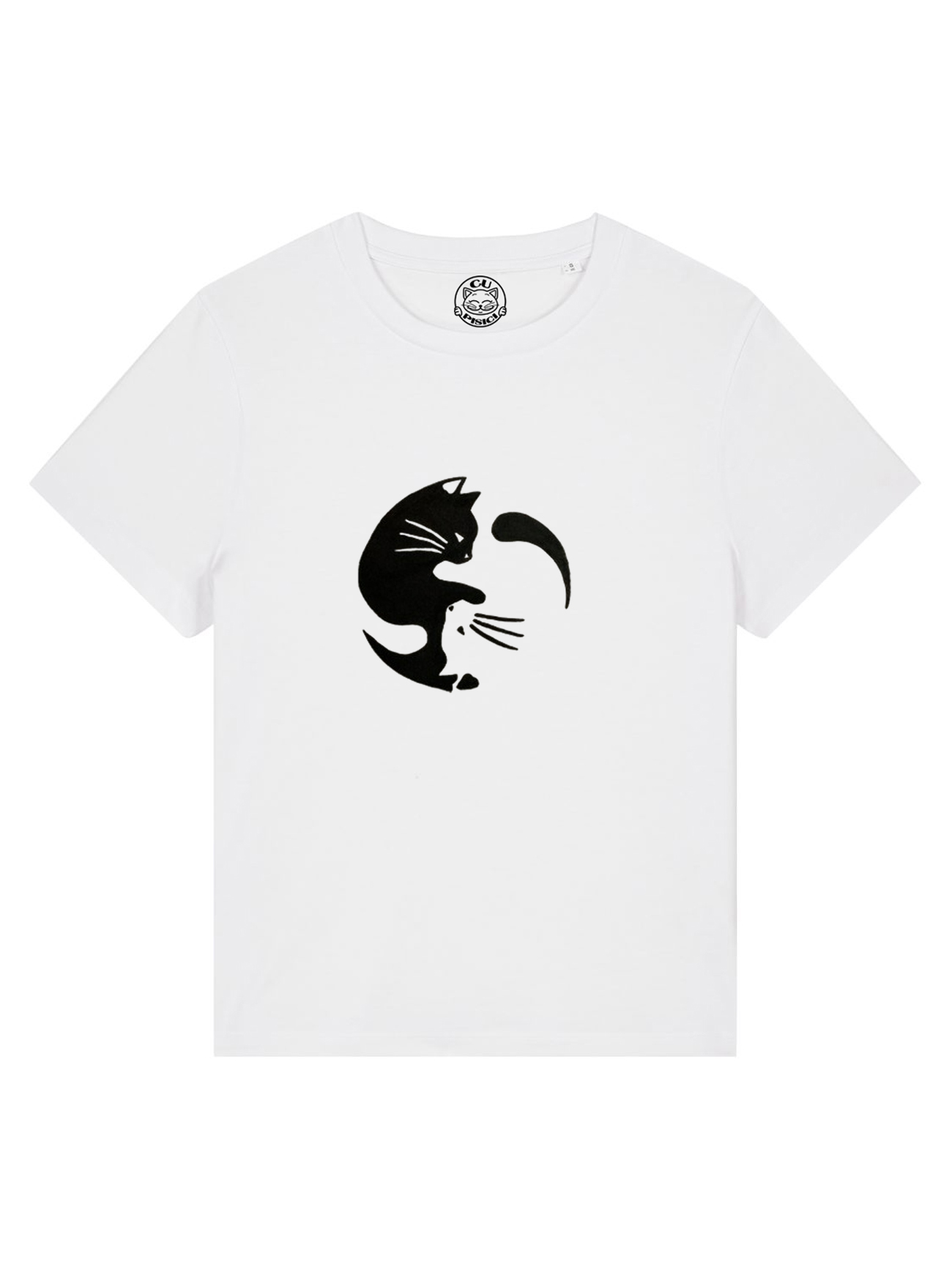 Tricou cu Pisici Yin si Yang, pictat manual-Alb