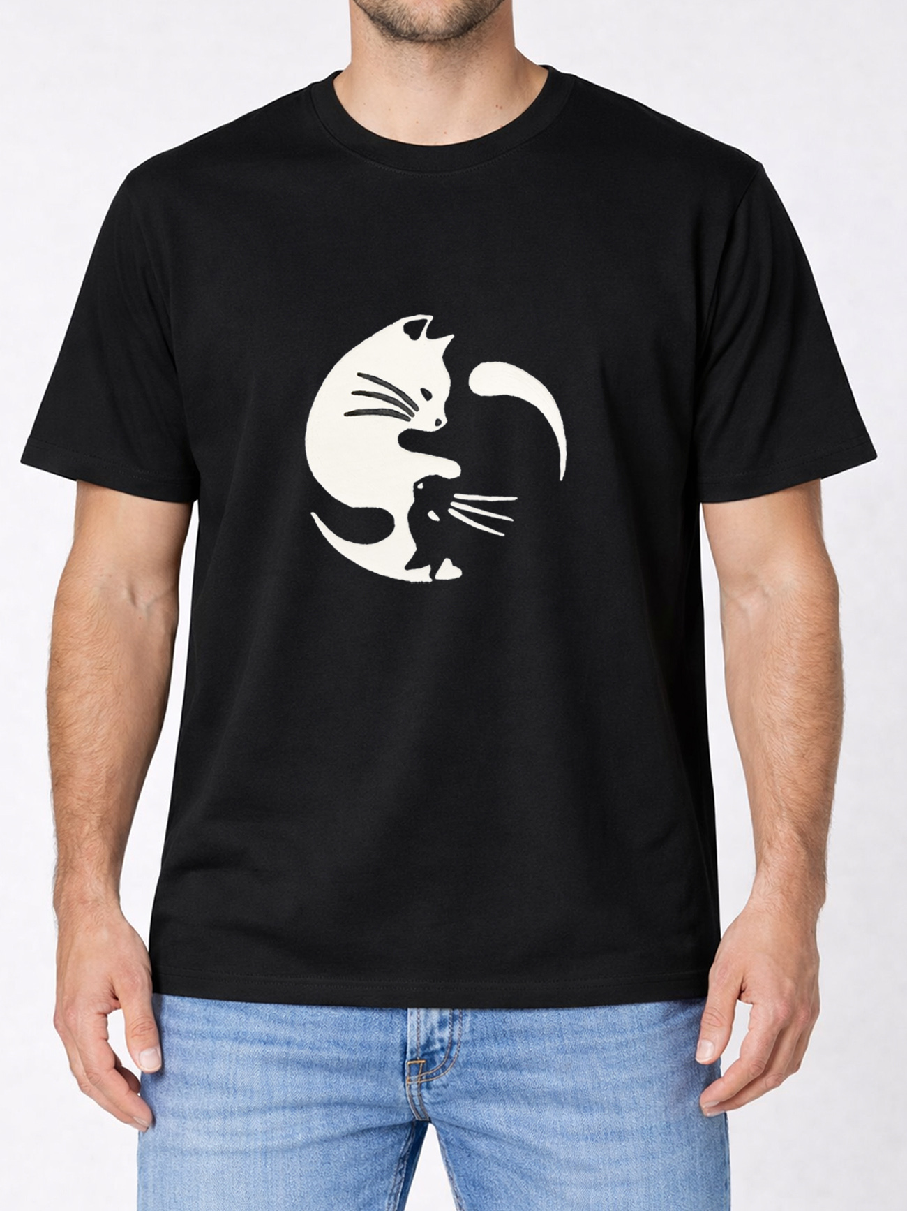 Tricou pentru barbati-Pisici Yin si Yang, pictat manual
