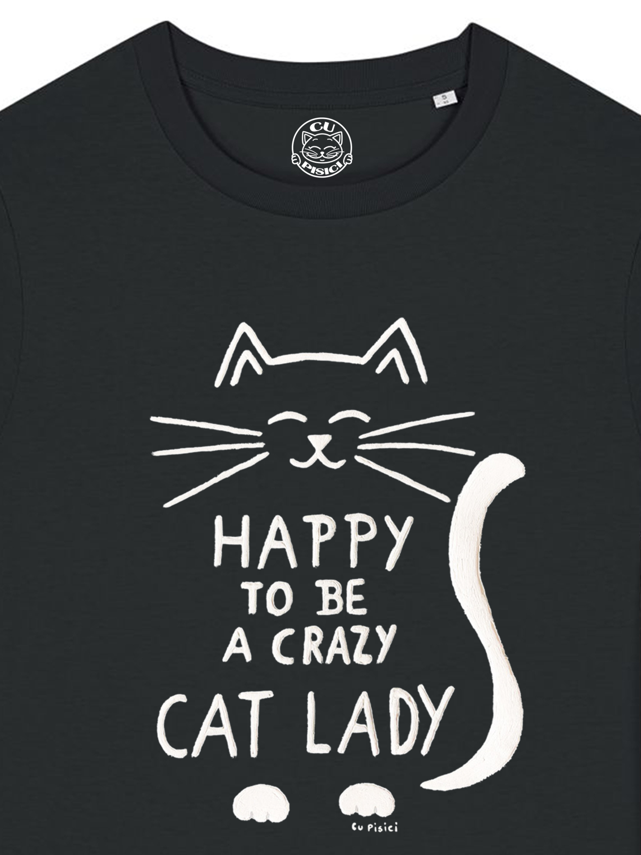 Tricou pictat manual-Crazy Cat Lady, Negru