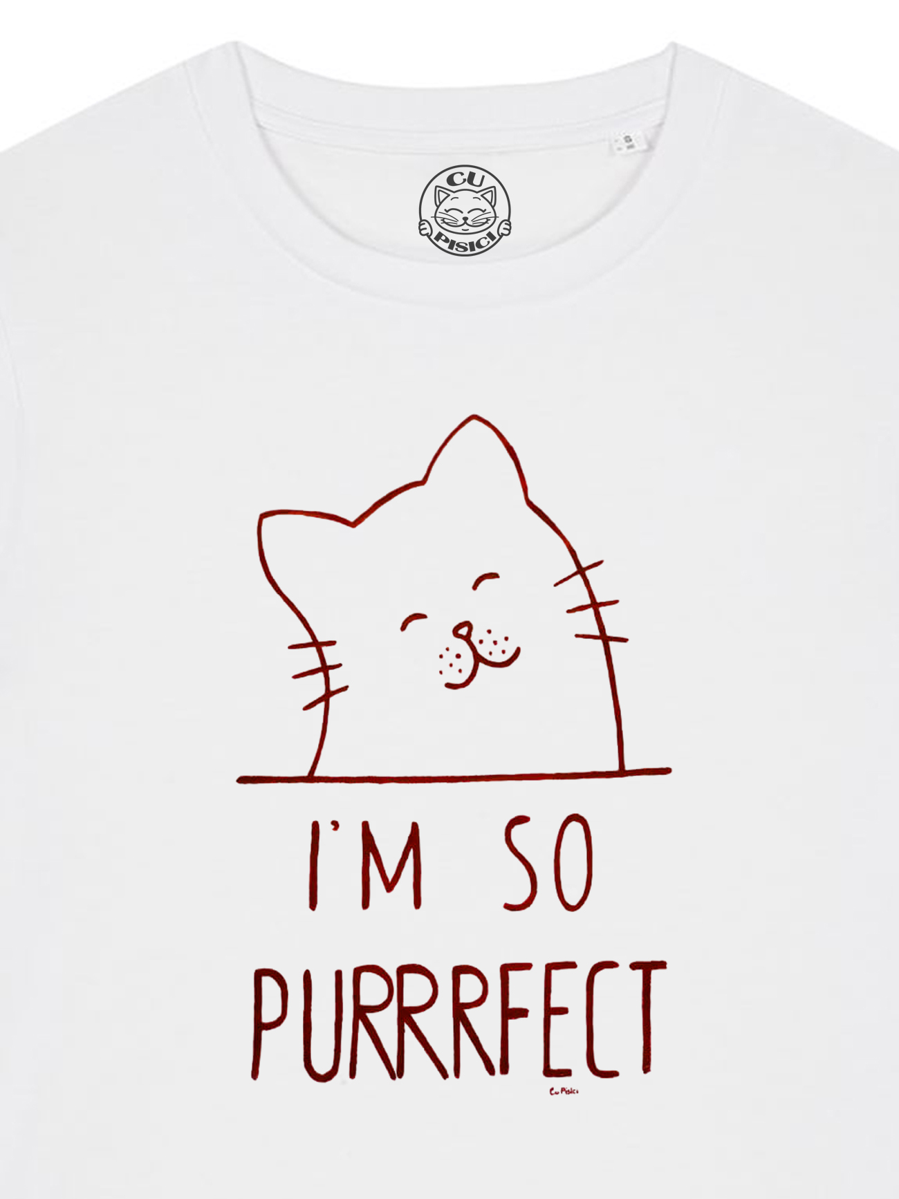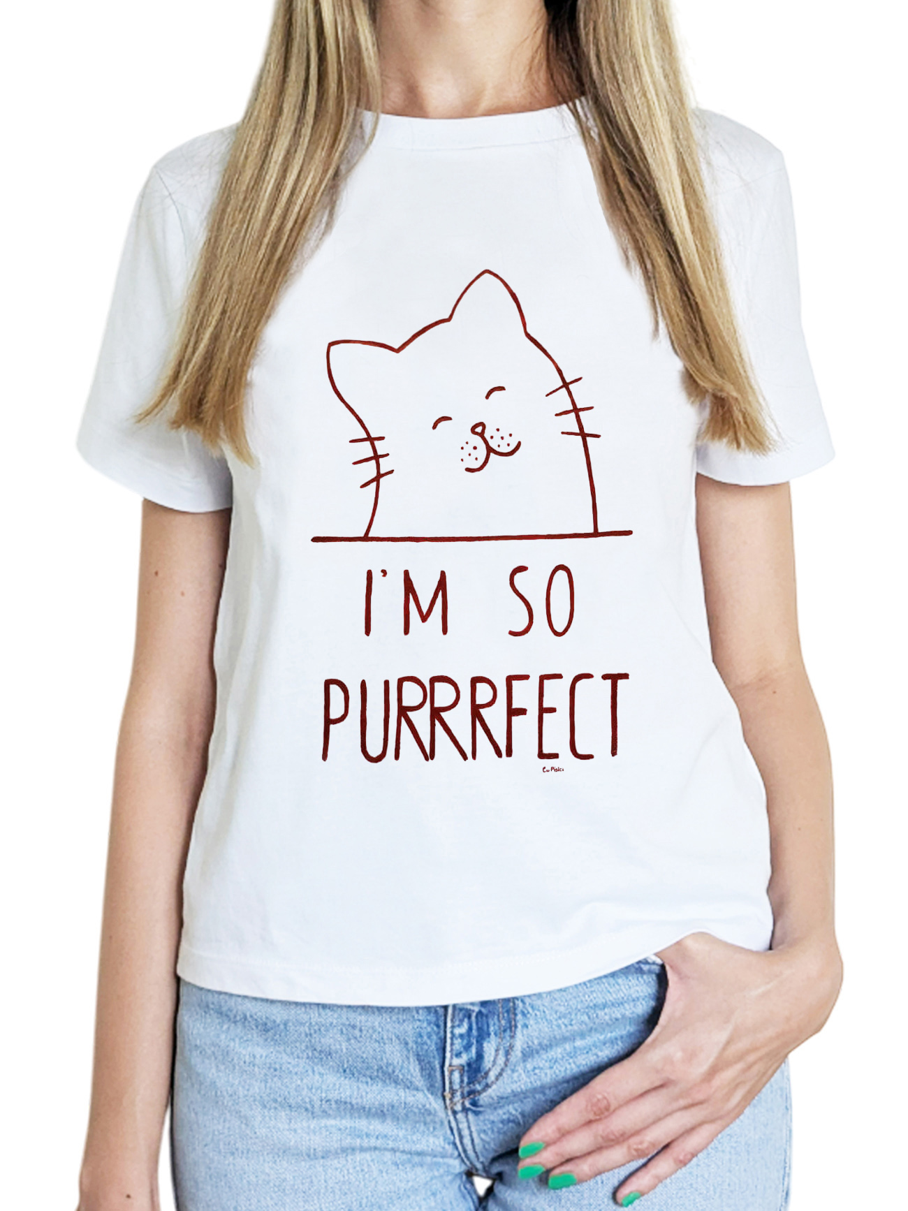 Poarta arta, nu doar un tricou! Modelul „I’m so Purrrfect” este pictat manual cu grija si atentie la detalii, fiecare piesa fiind unica, realizata in atelierul nostru cu multa pasiune. Designul surprinde farmecul aparte al pisicilor, aducand un plus de personalitate in garderoba ta.